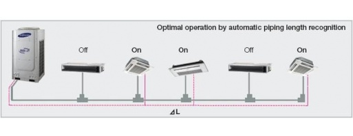 O sistema DVM PLUS III permite 200m de extensão de tubagem real, com uma distância máxima de 45m entre o primeiro derivador e a unidade interior mais distante, proporcionando assim conveniência e flexibilidade de instalação m edifícios comerciais.