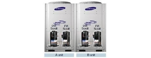 • Melhoria do COP pela utilização de múltiplos permutadores de calor das unidades exteriores nas cargas parciais. • Controlo preciso da capacidade do compressor • O sistema mantém a capacidade de modulação em caso de avaria de um dos compressores. • Assegura a duração dos compressores, alternando o funcionamento dos compressores DVI.